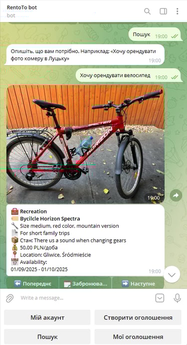 Telegram bot-based rental marketplace